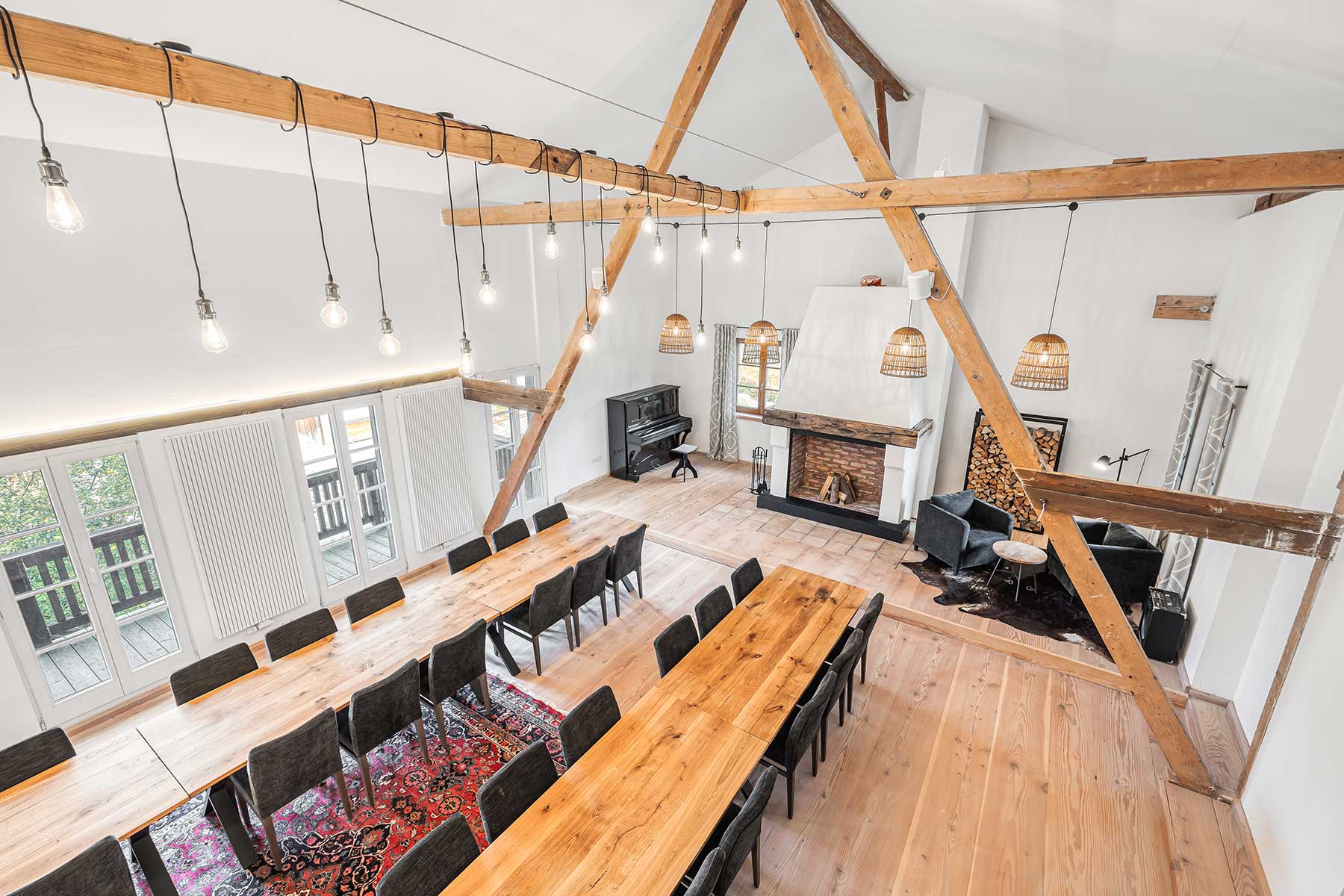 Sie suchen einen Platz zum Tagen oder Feiern? Kein Problem. Der Laimgruber Hof verfügt über einen grossen Saal für bis zu 40 Personen, der mit Tischen und Stühlen ausgestattet ist und über eine eigene große Küche verfügt, ebenso über separate Toiletten und einen eigenen Balkon.